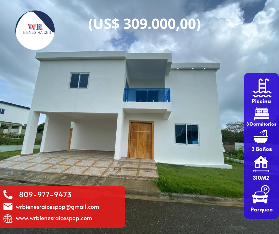 CASA EN VENTA EN PUERTO PLATA CON PISCINA, 2 NIVELES EN RESIDENCIAL CERRADO