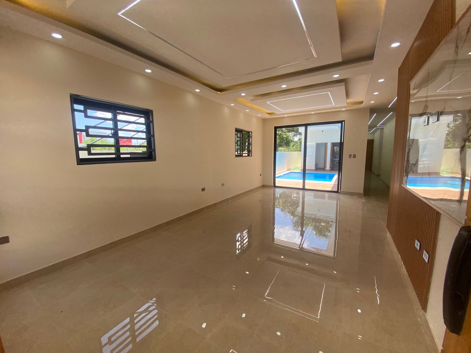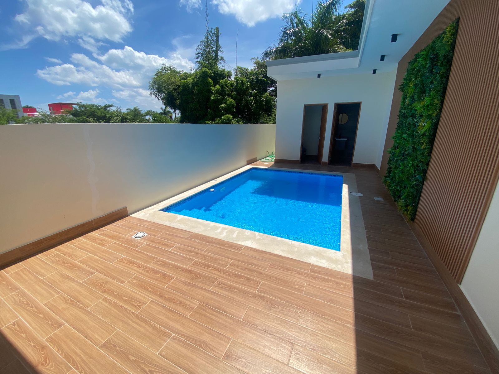 En el exterior encontrarás una hermosa terraza y piscina privada, ideal para disfrutar del clima del Caribe. Las terminaciones premium incluyen puertas, gabinetes y closets en roble importado, mesetas en mármol o granito natural, ventanas en aluminio con perfiles P92 y sheetrock en sala, comedor, cocina, pasillos y habitaciones.