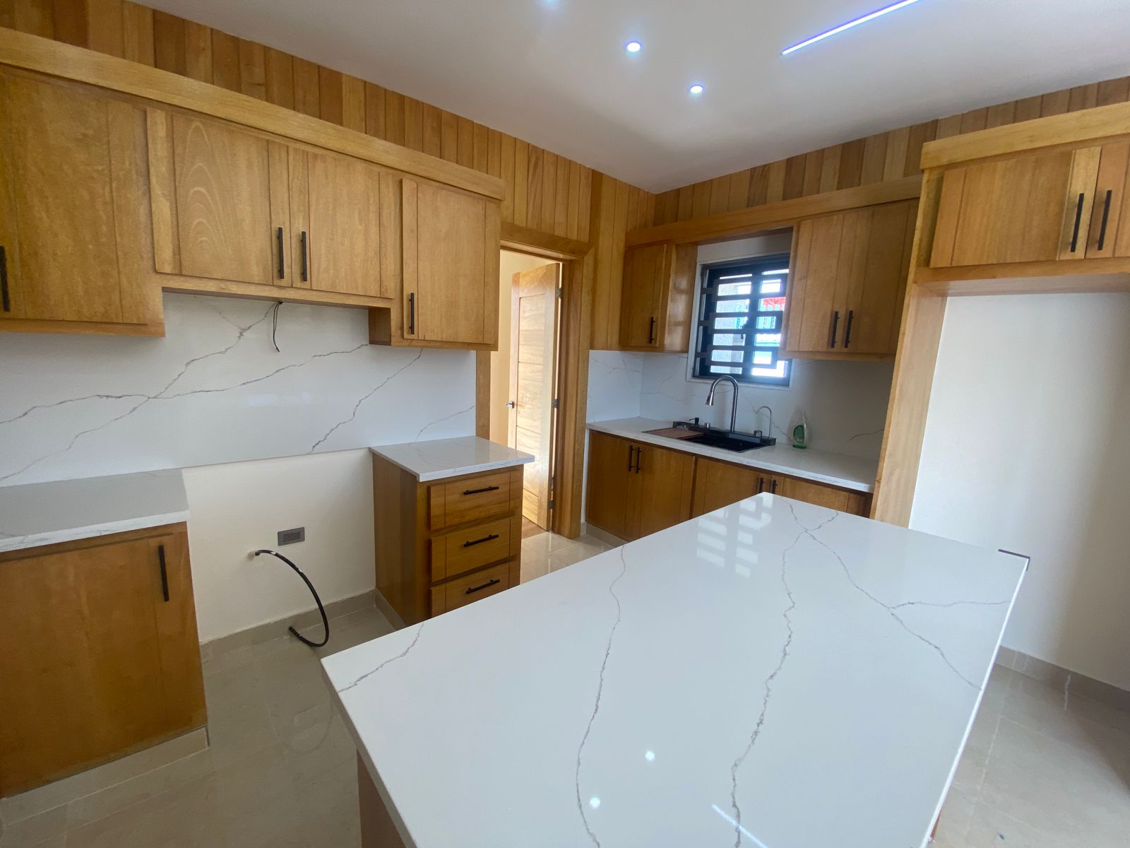 La propiedad cuenta con 250 m² de terreno y 200 m² de construcción, distribuidos de manera funcional y moderna. Dispone de marquesina doble, amplia sala con detalles decorativos en mármol y acanalados, comedor, cocina con isla y terminaciones de primera calidad.