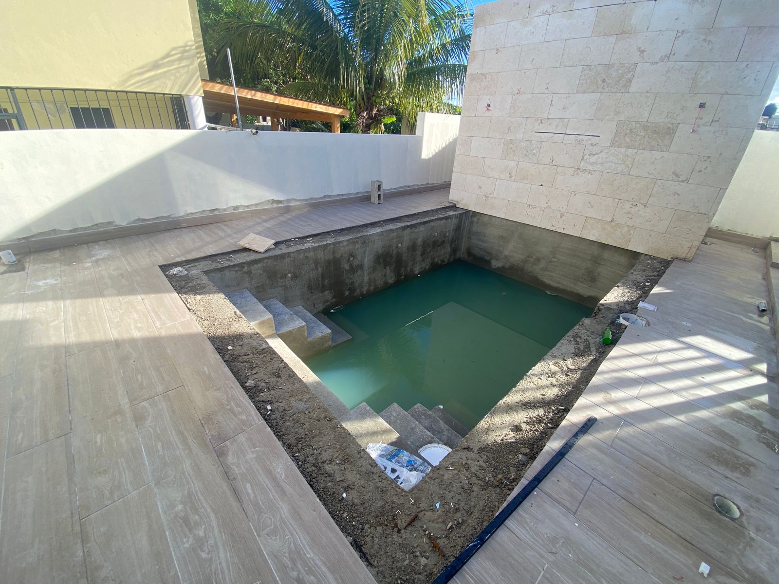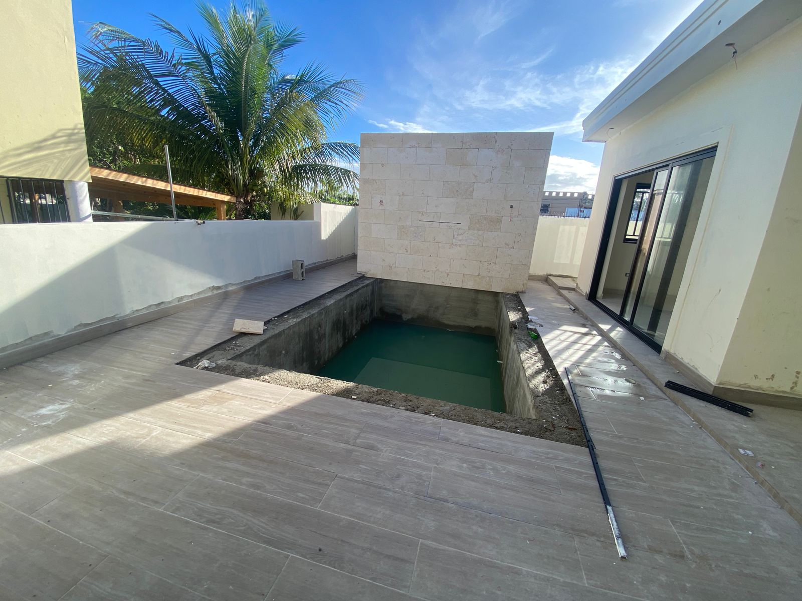 En el exterior, esta casa en venta en Puerto Plata ofrece una atractiva terraza abierta con piscina, baño para el área social y cuarto de máquinas, ideal para disfrutar en familia o con amigos. Sus terminaciones incluyen pisos en porcelanato español, cerámica española en los baños, puertas, closets y gabinetes en roble importado, así como topes de cocina en cuarzo y granito natural.