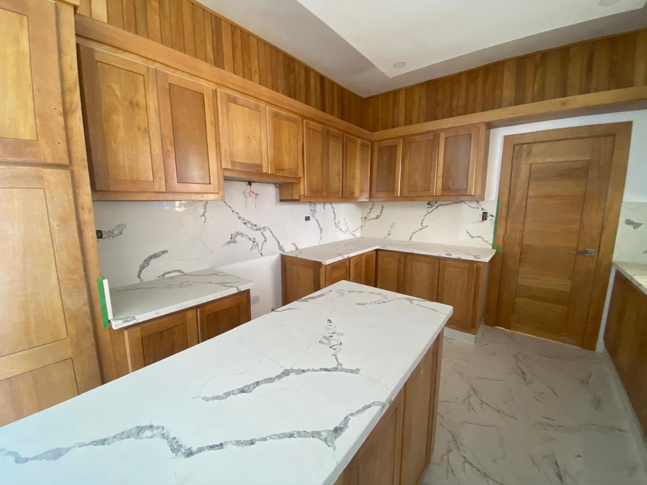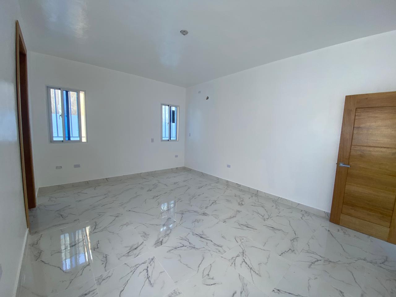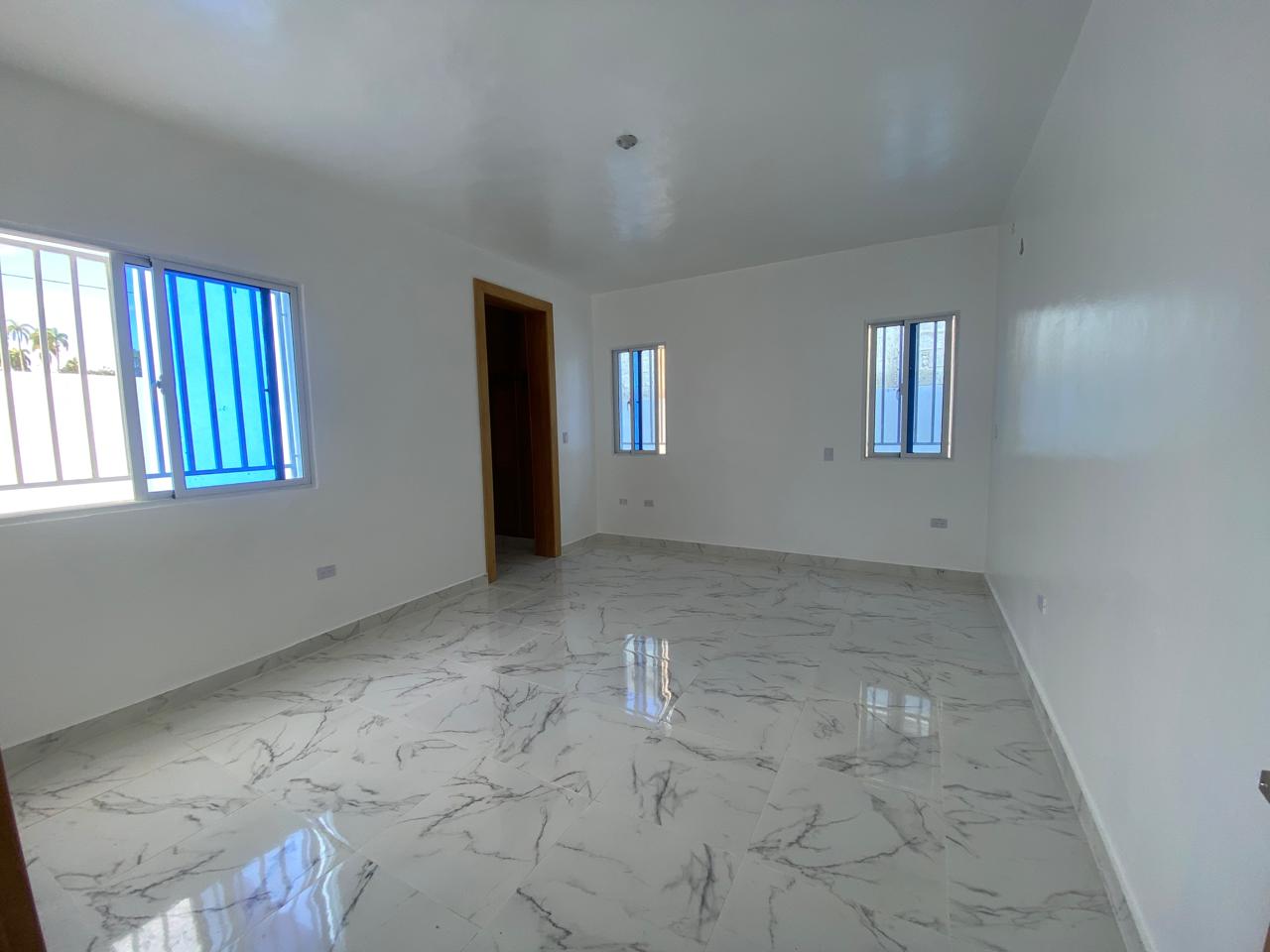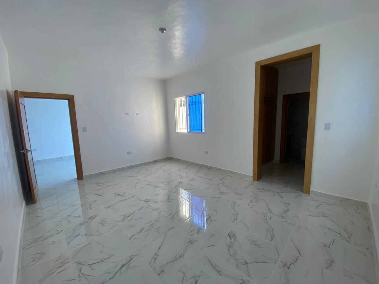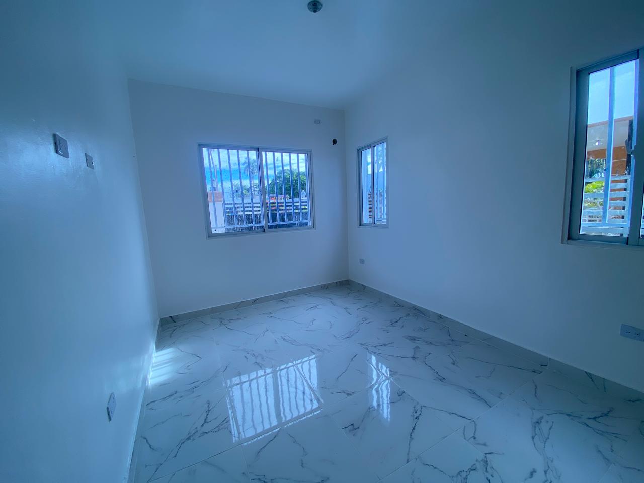 La propiedad cuenta con tres habitaciones, dos baños, sala, comedor, cocina con tope de granito, pisos en porcelanato español, galería y marquesina para dos vehículos. La habitación principal incluye su propio baño, y además posee un baño común para las demás habitaciones. Esta casa en venta en Puerto Plata también ofrece piscina privada, cisterna, área de lavado, calentador, ventanas en cristal y aluminio P65, gabinetes, puertas y detalles en roble importado, así como pre-instalación para cámaras de seguridad.