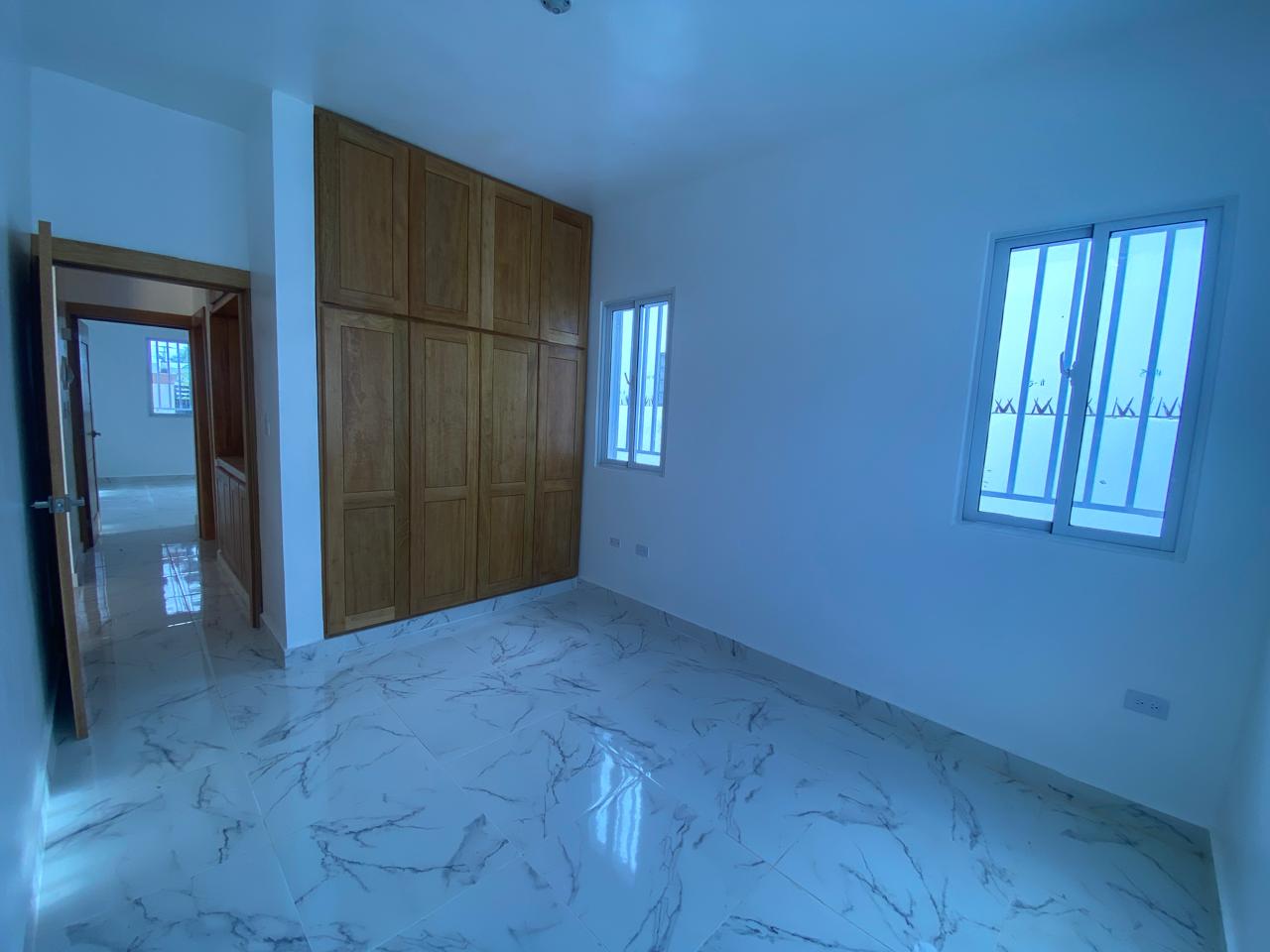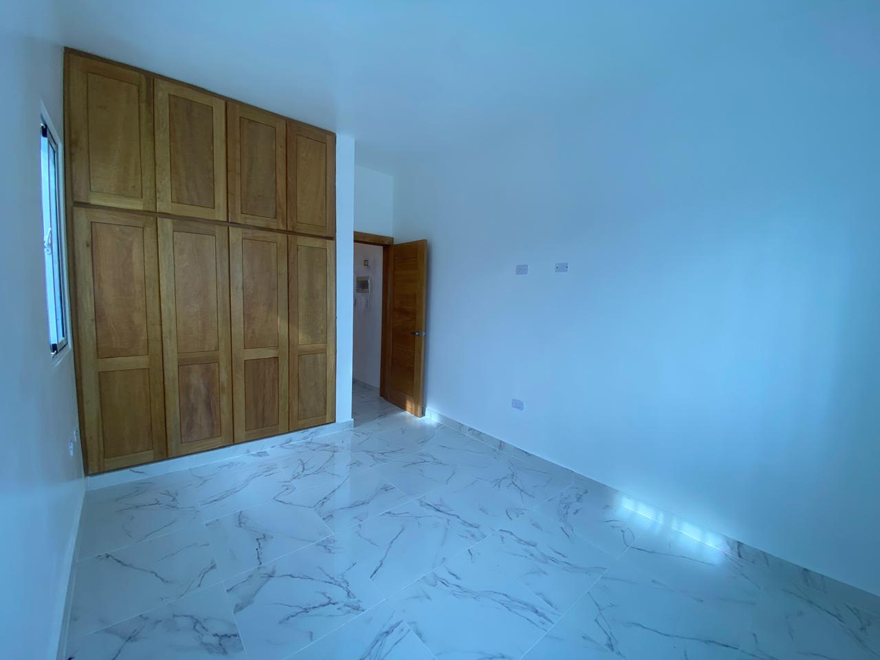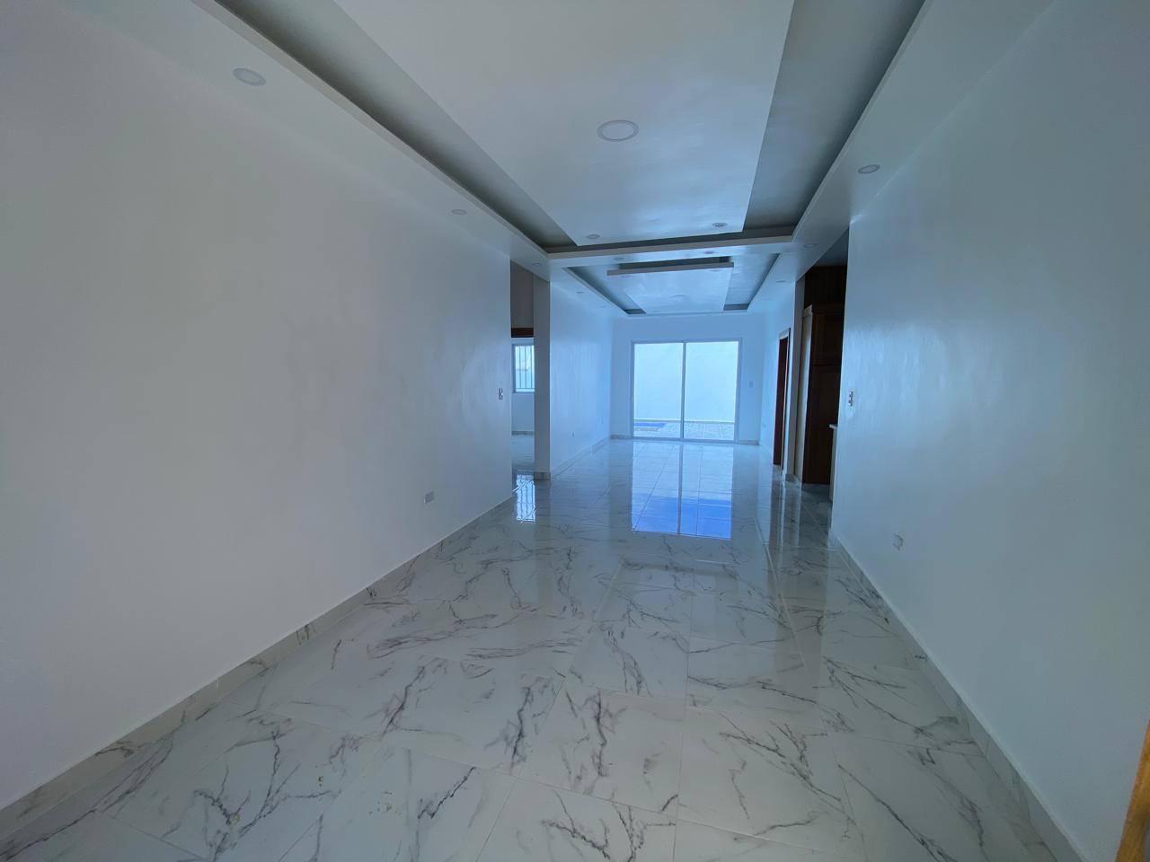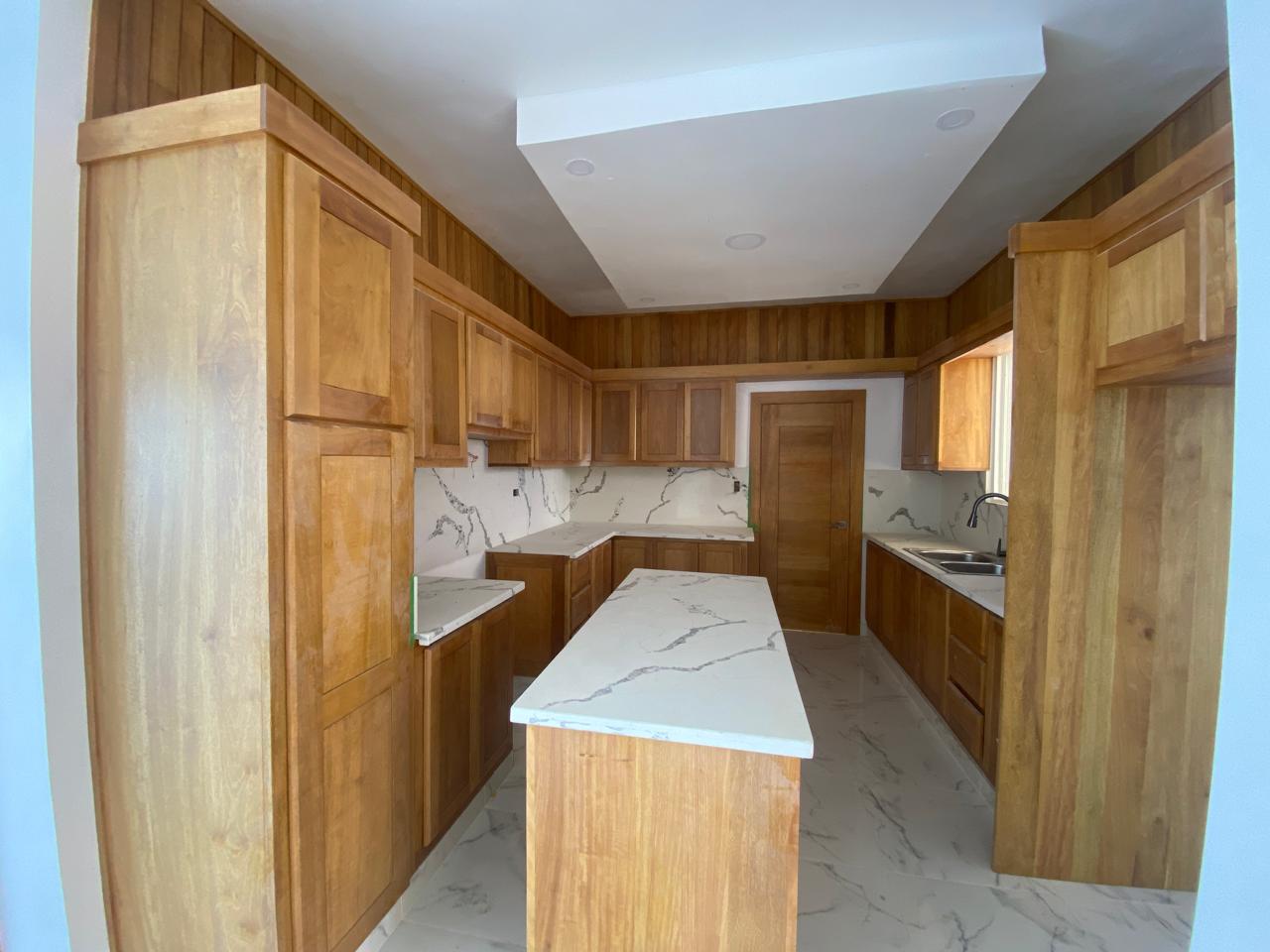 La propiedad cuenta con tres habitaciones, dos baños, sala, comedor, cocina con tope de granito, pisos en porcelanato español, galería y marquesina para dos vehículos. La habitación principal incluye su propio baño, y además posee un baño común para las demás habitaciones. Esta casa en venta en Puerto Plata también ofrece piscina privada, cisterna, área de lavado, calentador, ventanas en cristal y aluminio P65, gabinetes, puertas y detalles en roble importado, así como pre-instalación para cámaras de seguridad.